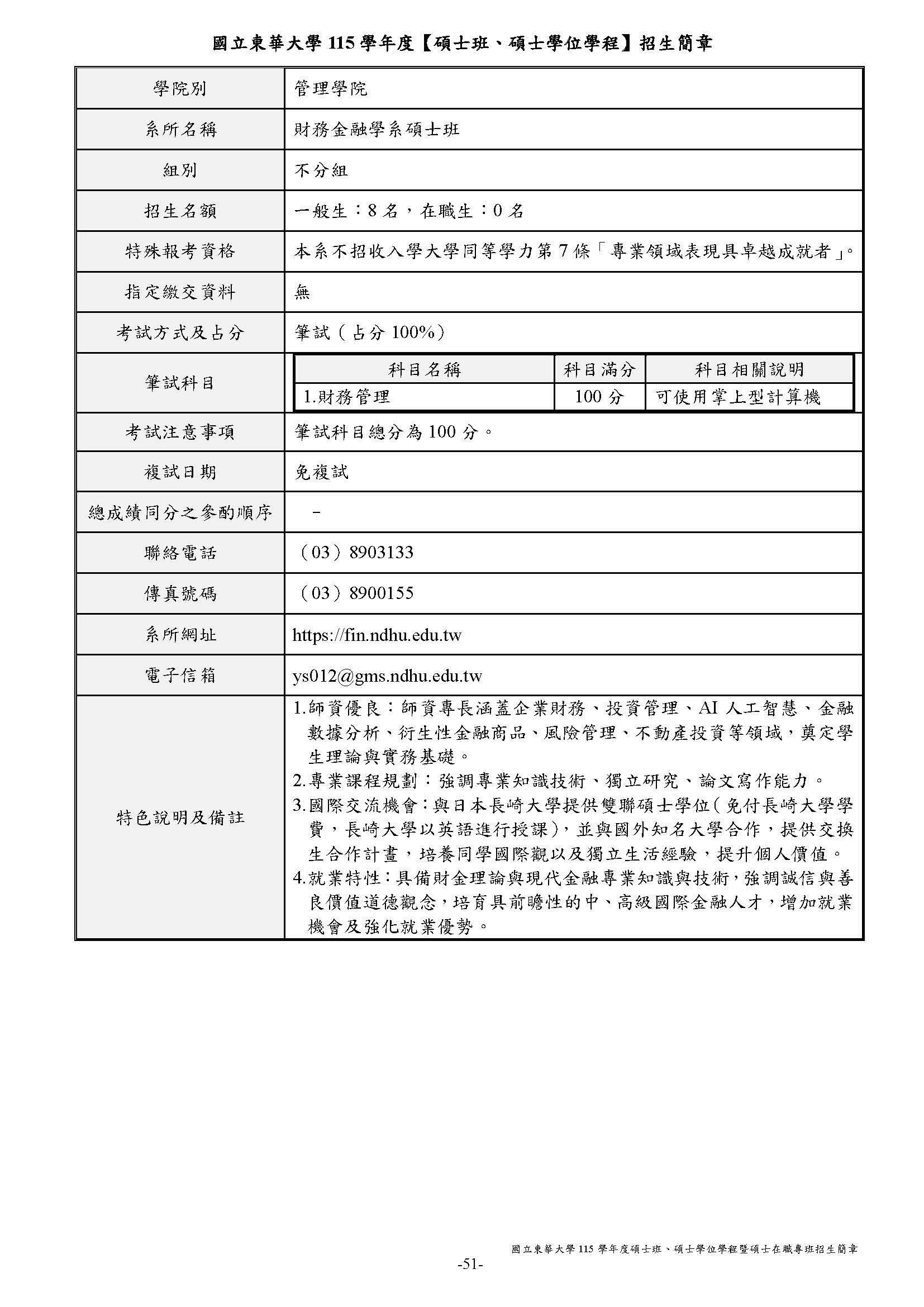 【招生資訊】財務金融學系115學年碩士班考試簡章